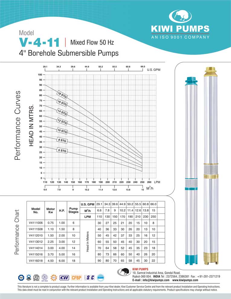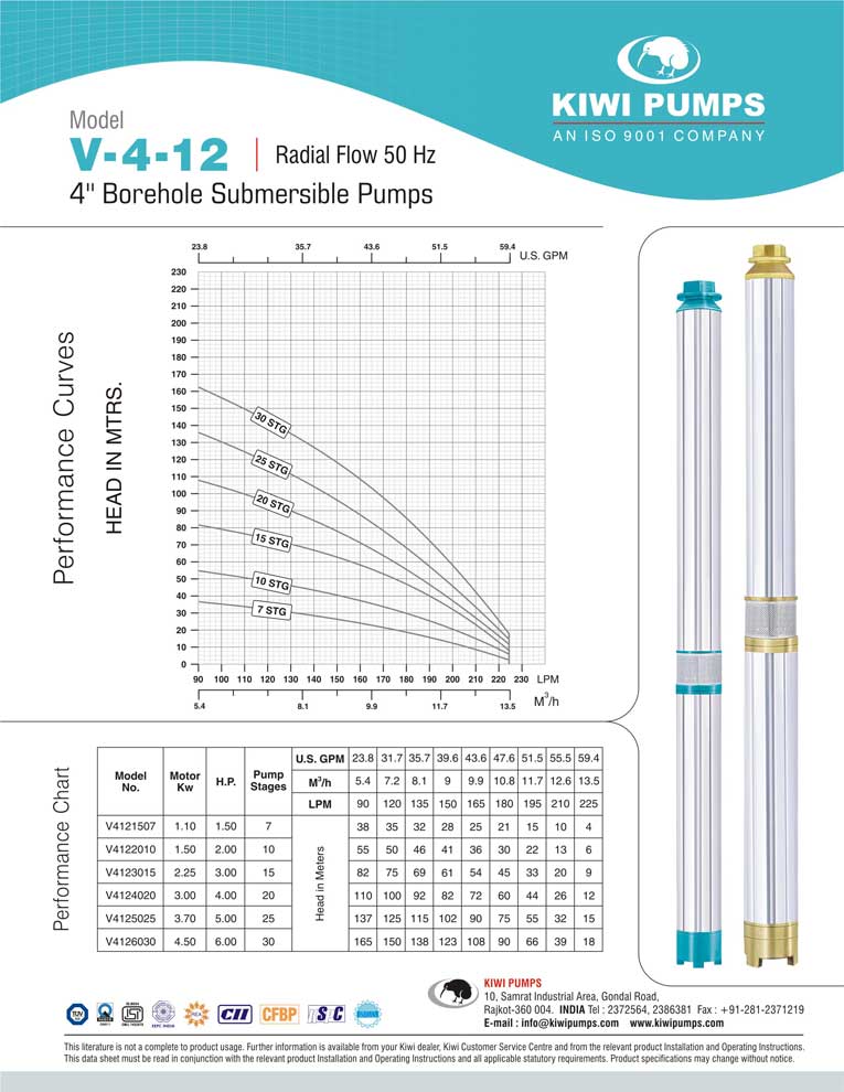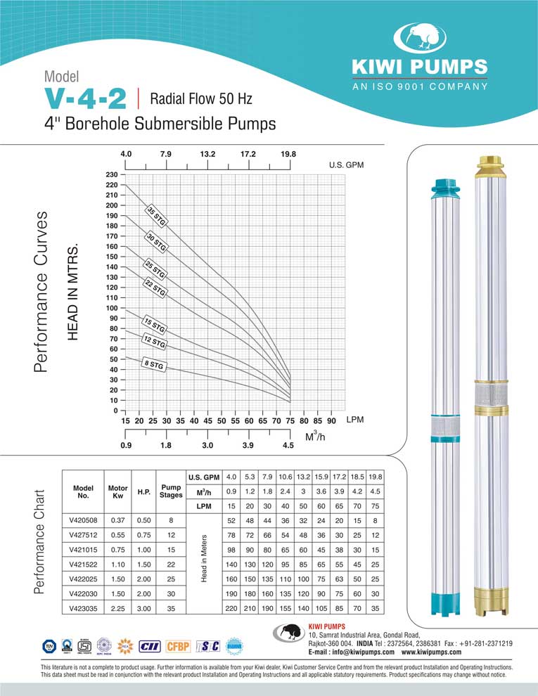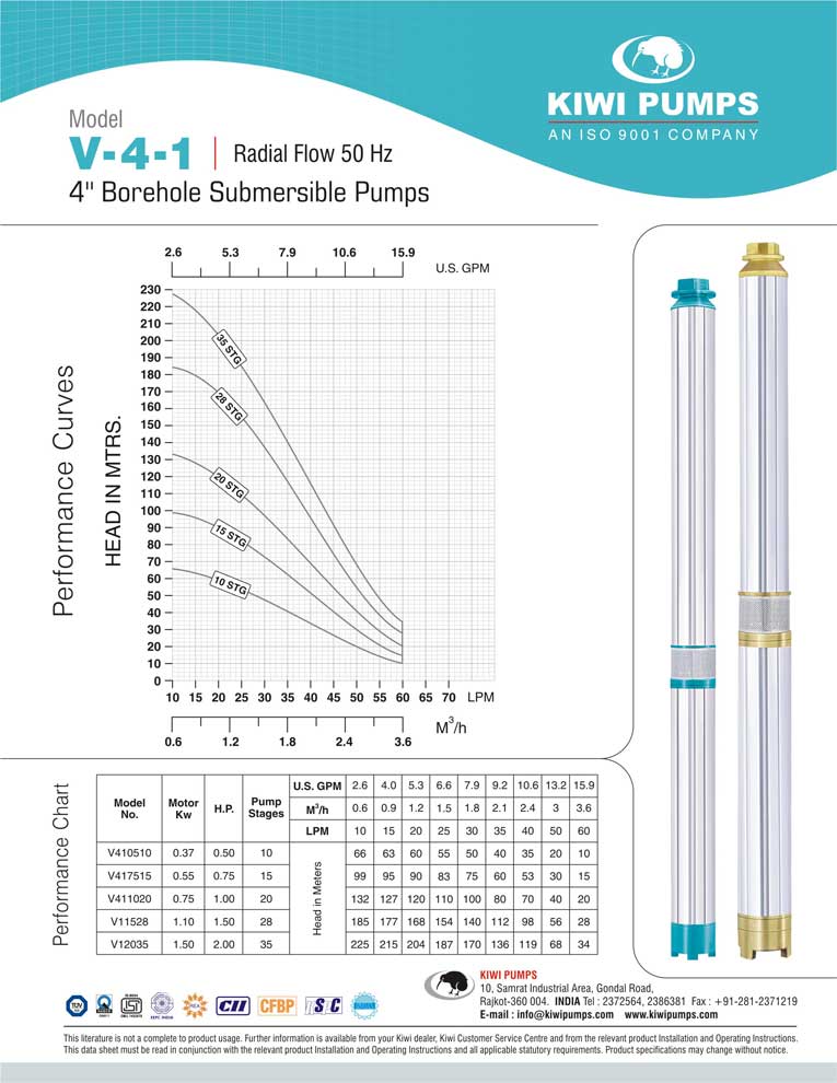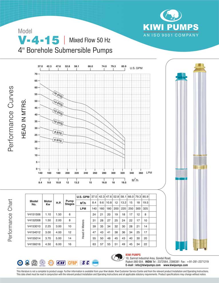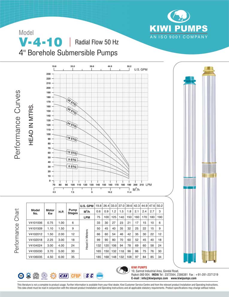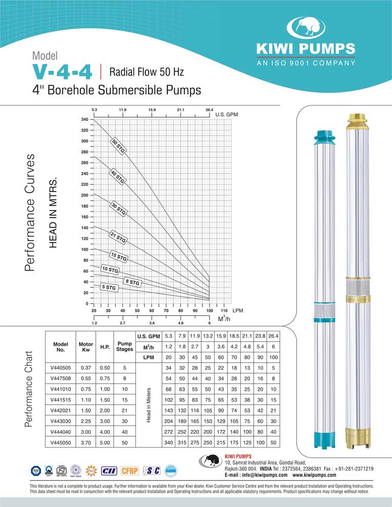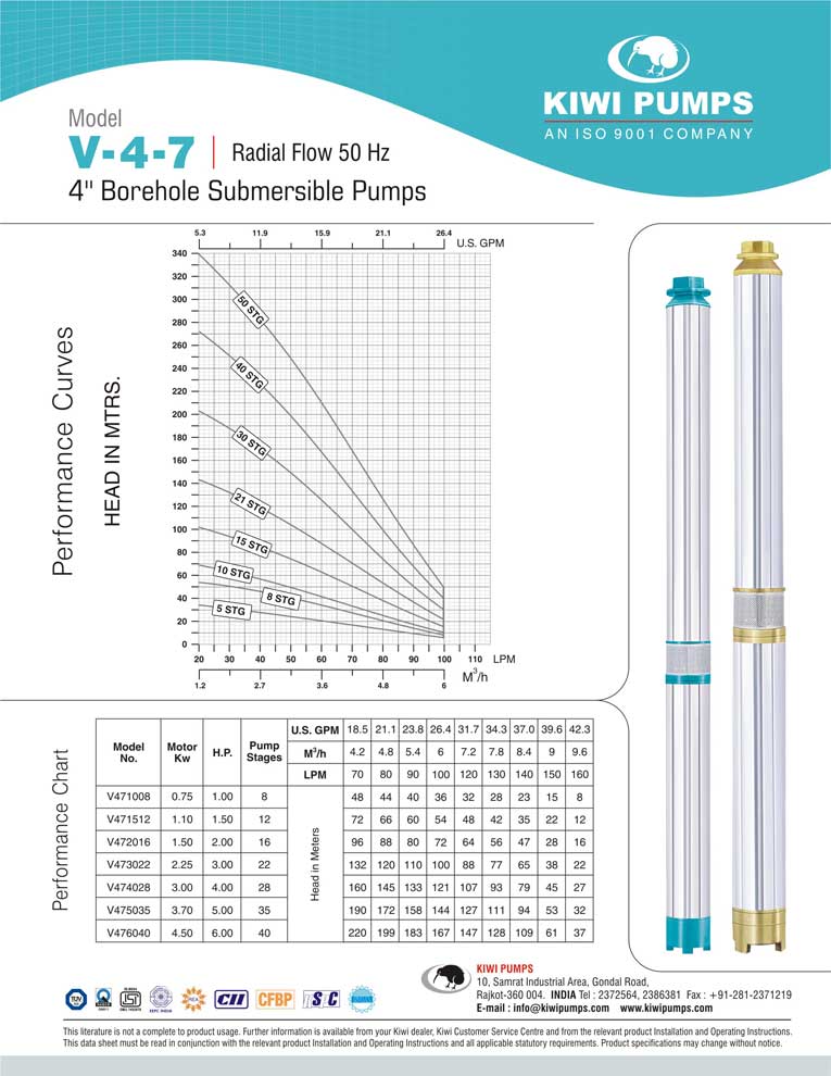 Kiwi pumps is India’s largest manufacturer & exporter of 4” submersible pumps, but that is just a small part of the complete wide range of submersible pumps available to our professional dealer. Kiwi Pumps, Rajkot TUV SUD certified ISO 9001:2000 Company that’s what you need in your bore. Kiwi has a wide range of 3” borehole submersible pumps that suit various kinds of user requirements.